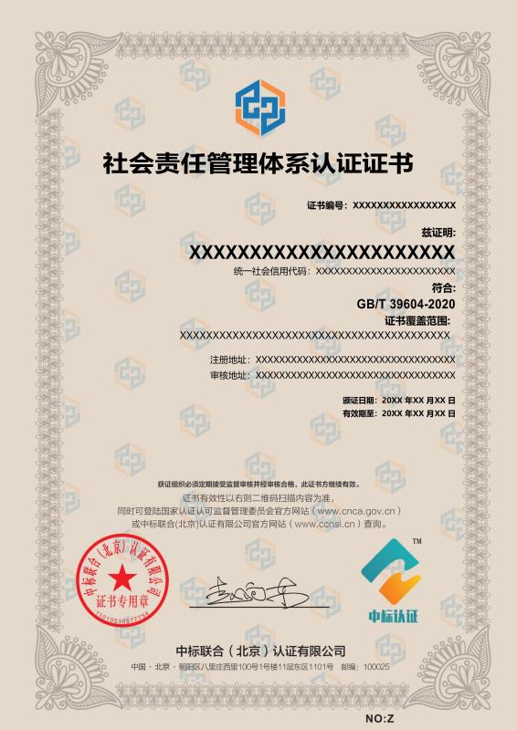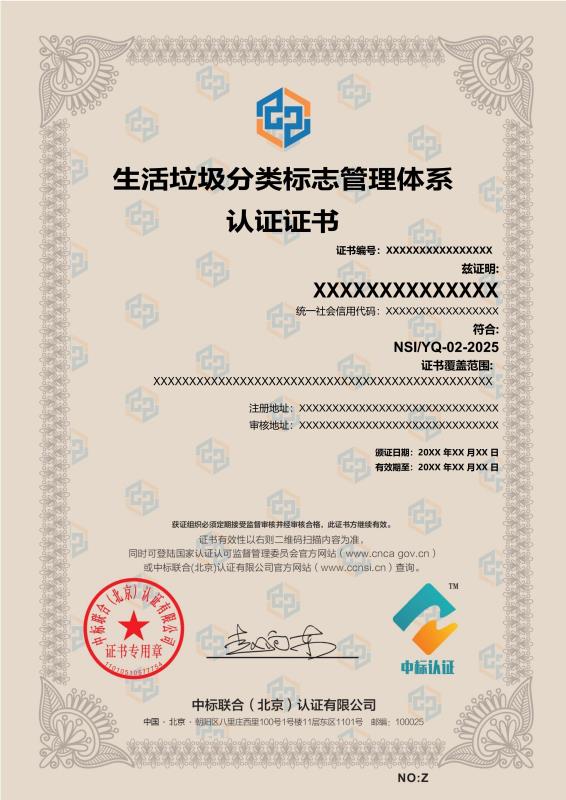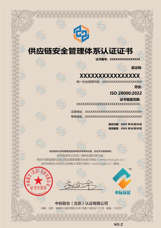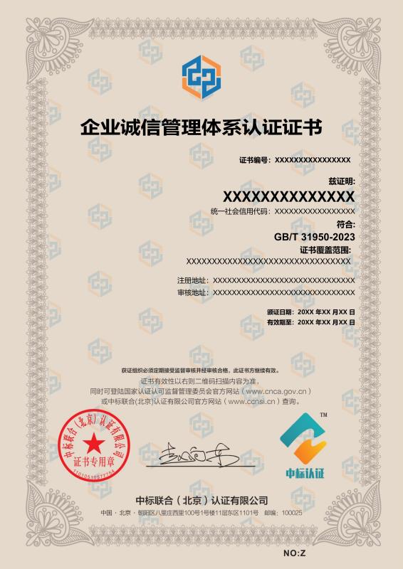 管理體系證書樣本展示